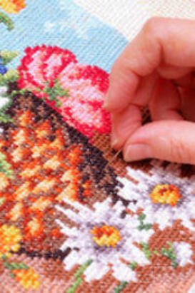All common techniques such as ¼-stitch, French knots, Rhodes symbols,